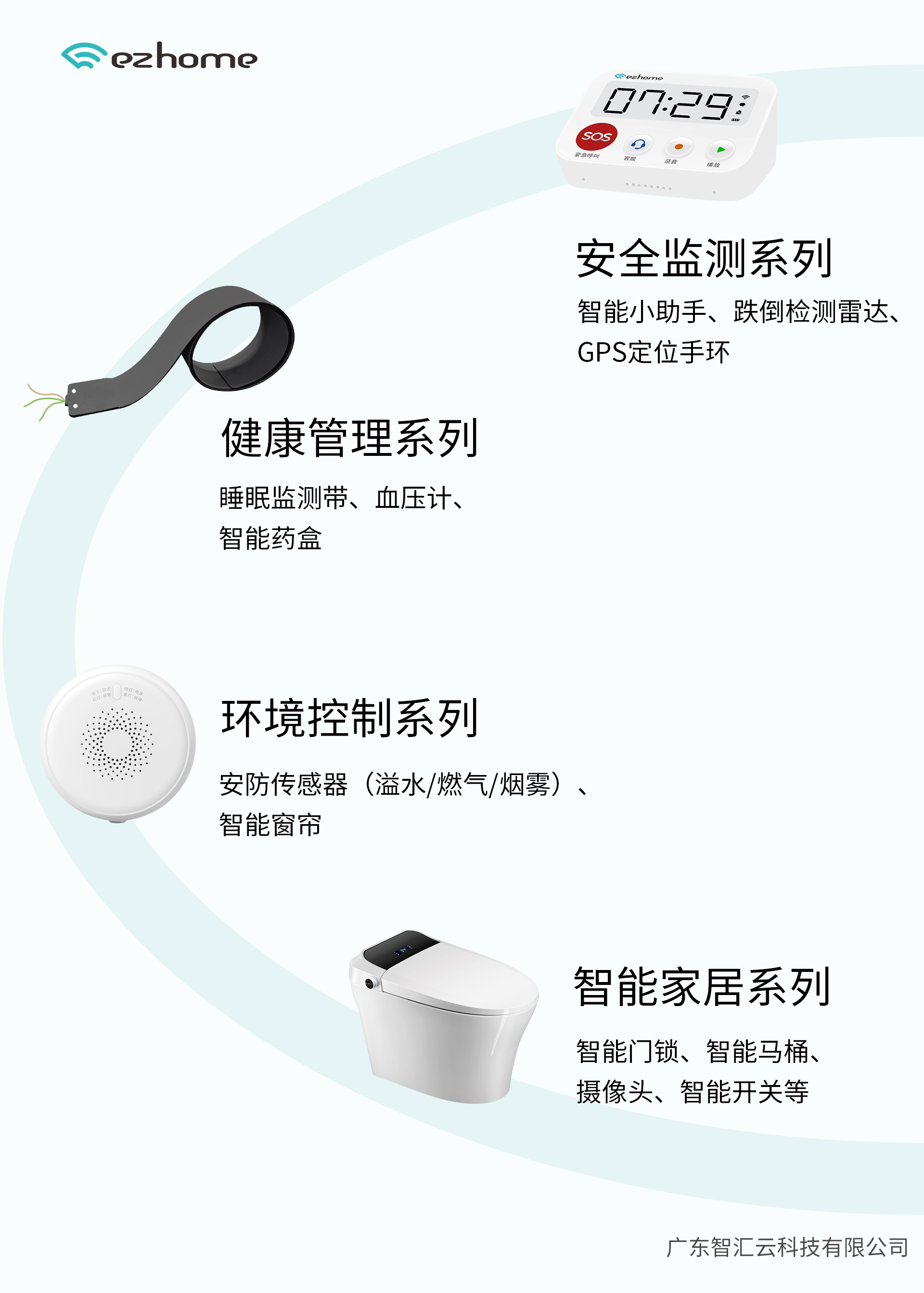 我們提供覆蓋居家安全、健康管理、生活服務(wù)等多維度的成熟產(chǎn)品組合,所有智能硬件產(chǎn)品均可與我司云平臺無縫對接、快速上線,大幅提升部署效率。