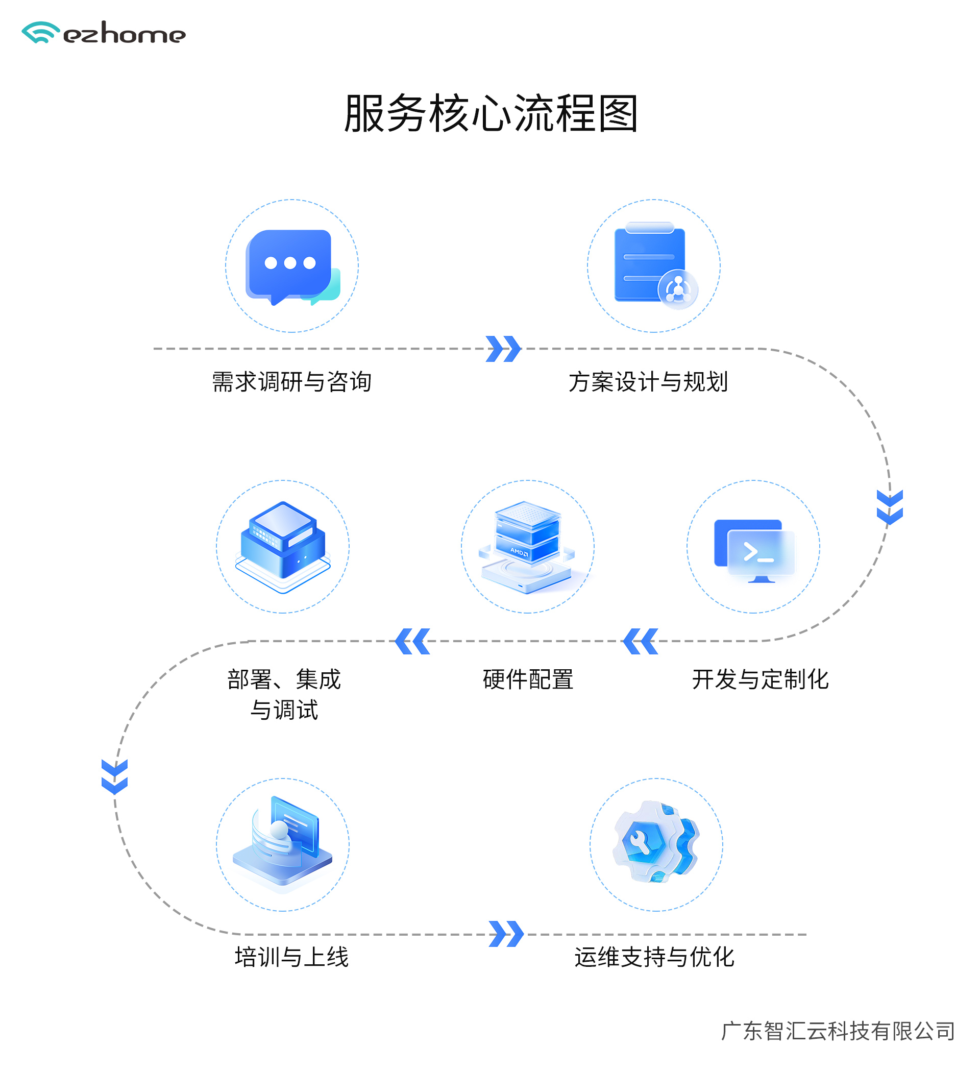 我們從方案設(shè)計階段便開始全程護航,提供包括技術(shù)咨詢、項目支持、部署調(diào)試、接口聯(lián)調(diào)、人員培訓等全流程服務(wù)。智匯云擁有專業(yè)的技術(shù)支持團隊,能夠及時定位并協(xié)助解決各類技術(shù)問題,快速響應并協(xié)助解決問題,確保項目高效推進、穩(wěn)定運行。