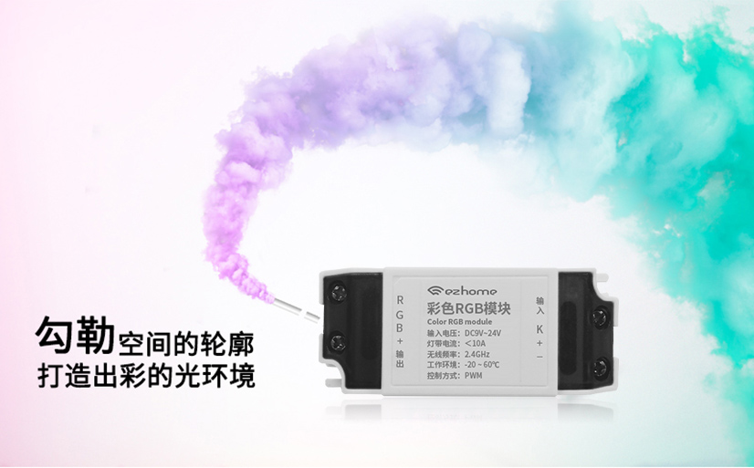 搭配RGB燈帶和變壓器使用,可調(diào)節(jié)多種燈光色彩;