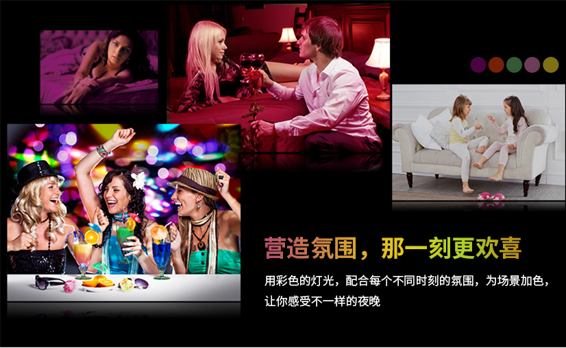 看電影的時(shí)候,情侶間約會(huì)的時(shí)候,朋友間聚會(huì)的時(shí)候,開(kāi)香檳開(kāi)part的時(shí)候,或者是一個(gè)人在家的時(shí)候,都可以根據(jù)你的場(chǎng)景來(lái)調(diào)節(jié)多種顏色