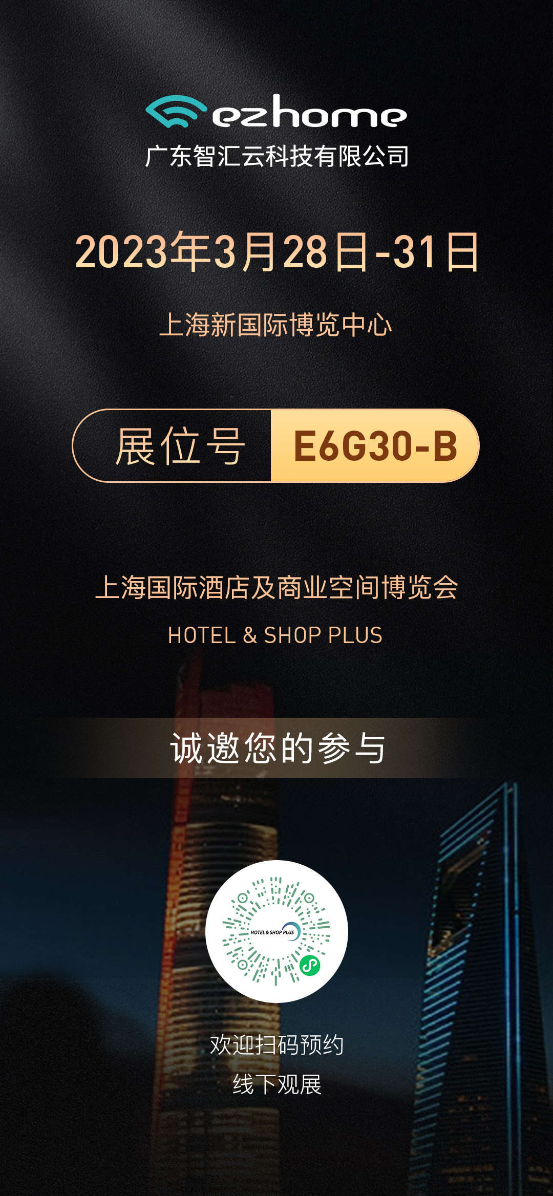 為進一步加強業(yè)界伙伴對智匯云智慧酒店方案的認(rèn)知和理解,拓展新的商業(yè)空間,智匯云將于3月28日-31日在上海新國際博覽中心參加Hotel & Shop Plus上海國際酒店及商業(yè)空間博覽會,屆時將會在E6G30-B展位隆重亮相,歡迎各位掃碼預(yù)約觀展。