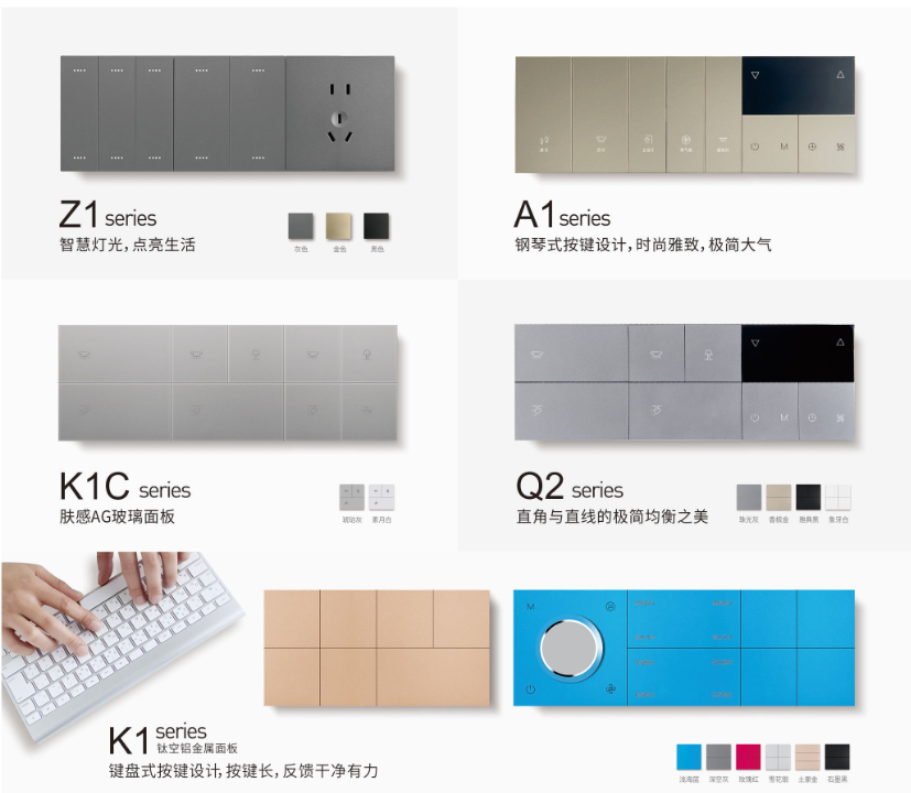 本次智匯云將攜新品智能開關(guān)首次亮相線下,新品系列開關(guān)擁有多材質(zhì)、多色彩、多規(guī)格的特點。材質(zhì)有阻燃PC、AG玻璃、太空鋁等多種材質(zhì),且每個材質(zhì)都有豐富的色彩,特色面板造型設(shè)計。想近距離見證它強大功能的朋友一定不容錯過!