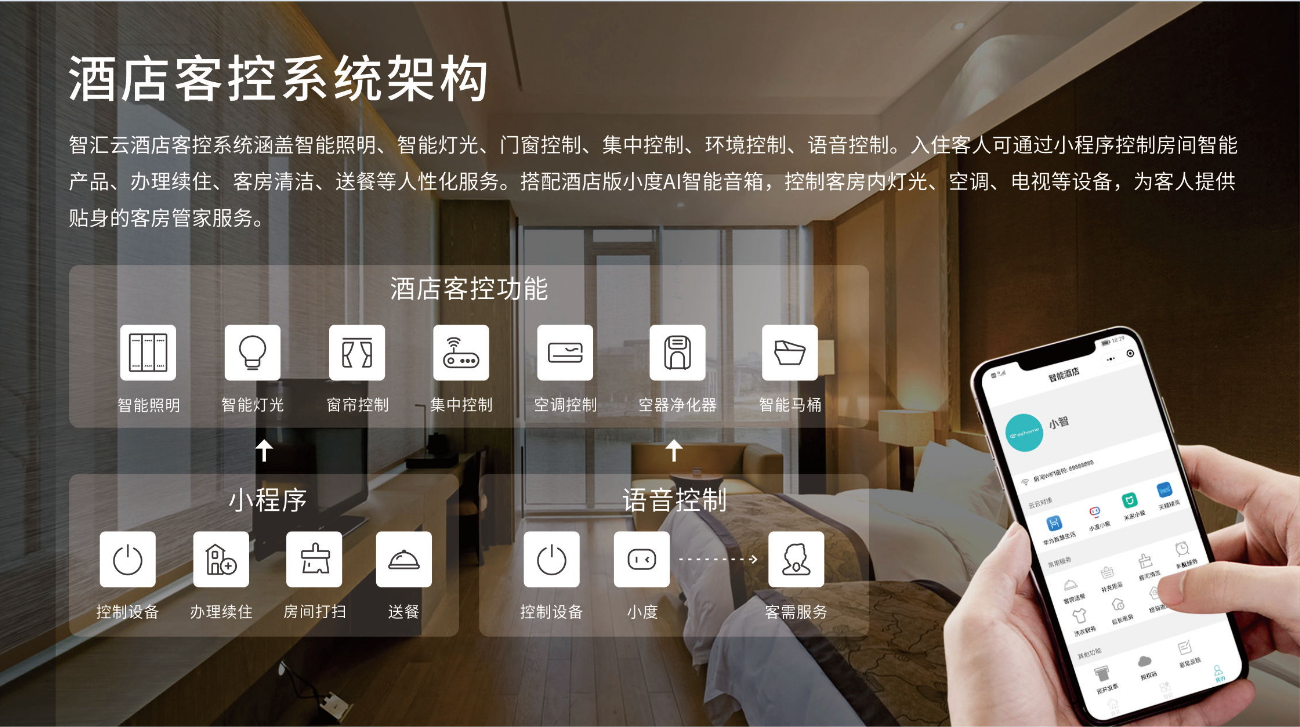 智匯云智能客控系統(tǒng)解決方案經(jīng)過多次迭代,支持小度酒店版第三方智能音箱接入,智能化場景應(yīng)用也更全面,比如實現(xiàn)插卡取電的歡迎場景、場景模式任意切換、閱讀/睡眠/起夜模式等等,助力酒店產(chǎn)業(yè)打造更豐富的數(shù)智化客房場景,全面提升住客體驗。