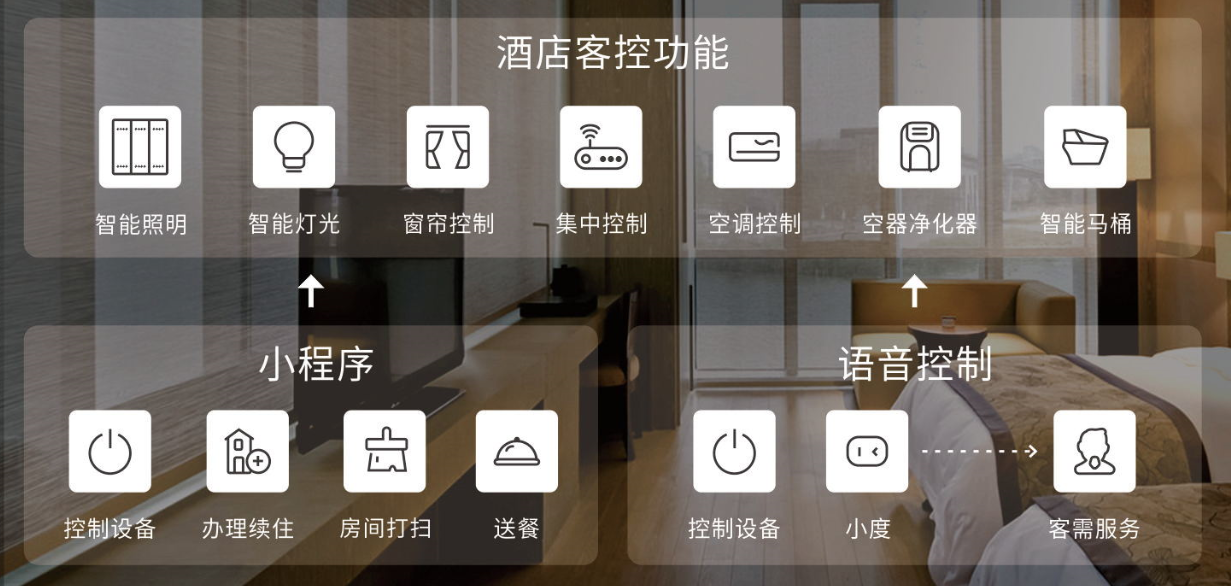 智匯云酒店客控產(chǎn)品接入小度智慧酒店系統(tǒng),搭載小度酒店版智能音箱,用戶通過語音即可實現(xiàn)對客房燈光、窗簾、電視、空調等設備的控制,如:“小度小度,打開燈光”、“小度小度,把空調調到13℃”,進一步提升客控設備的語音智能交互體驗。