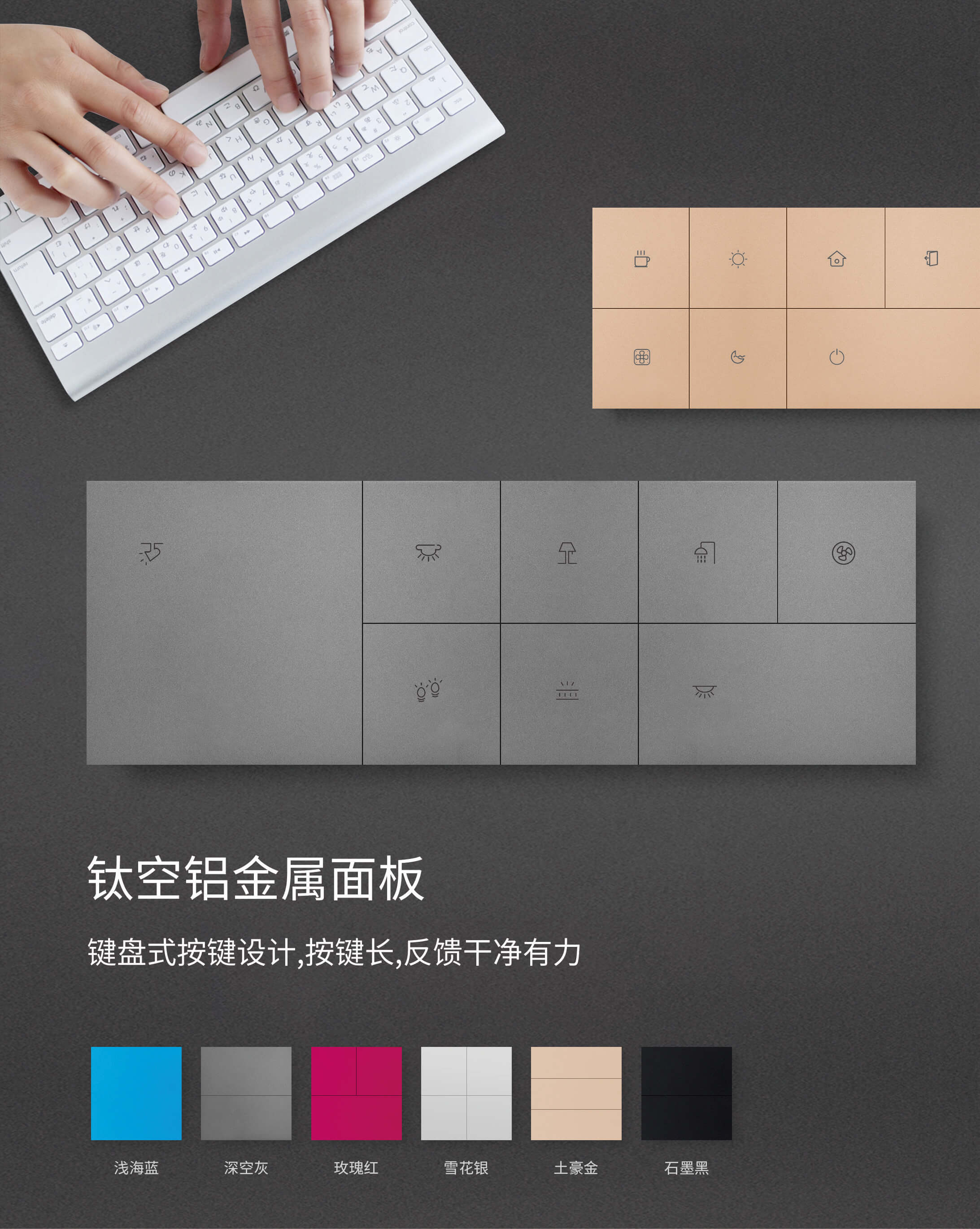 本次展會(huì),智匯云將攜全系列智能開關(guān)、智能旋鈕等眾多新品亮相現(xiàn)場(chǎng)。新品開關(guān)系列面板材質(zhì)多樣,有阻燃PC、AG玻璃、太空鋁等多種類型,色彩質(zhì)感豐富多彩,與不同家裝風(fēng)格搭配完美融合。