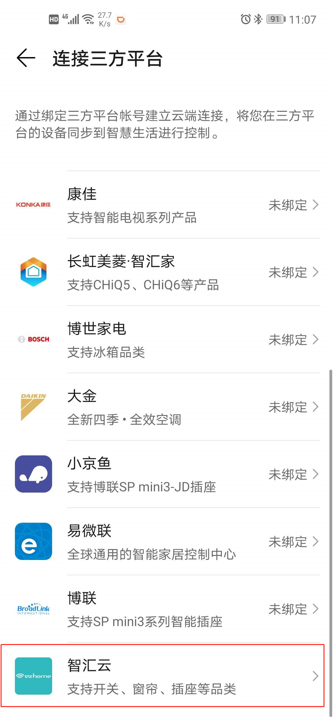 完成“云云對(duì)接”后,便可使用華為旗下的“華為智慧生活”APP控制智匯云旗下產(chǎn)品。