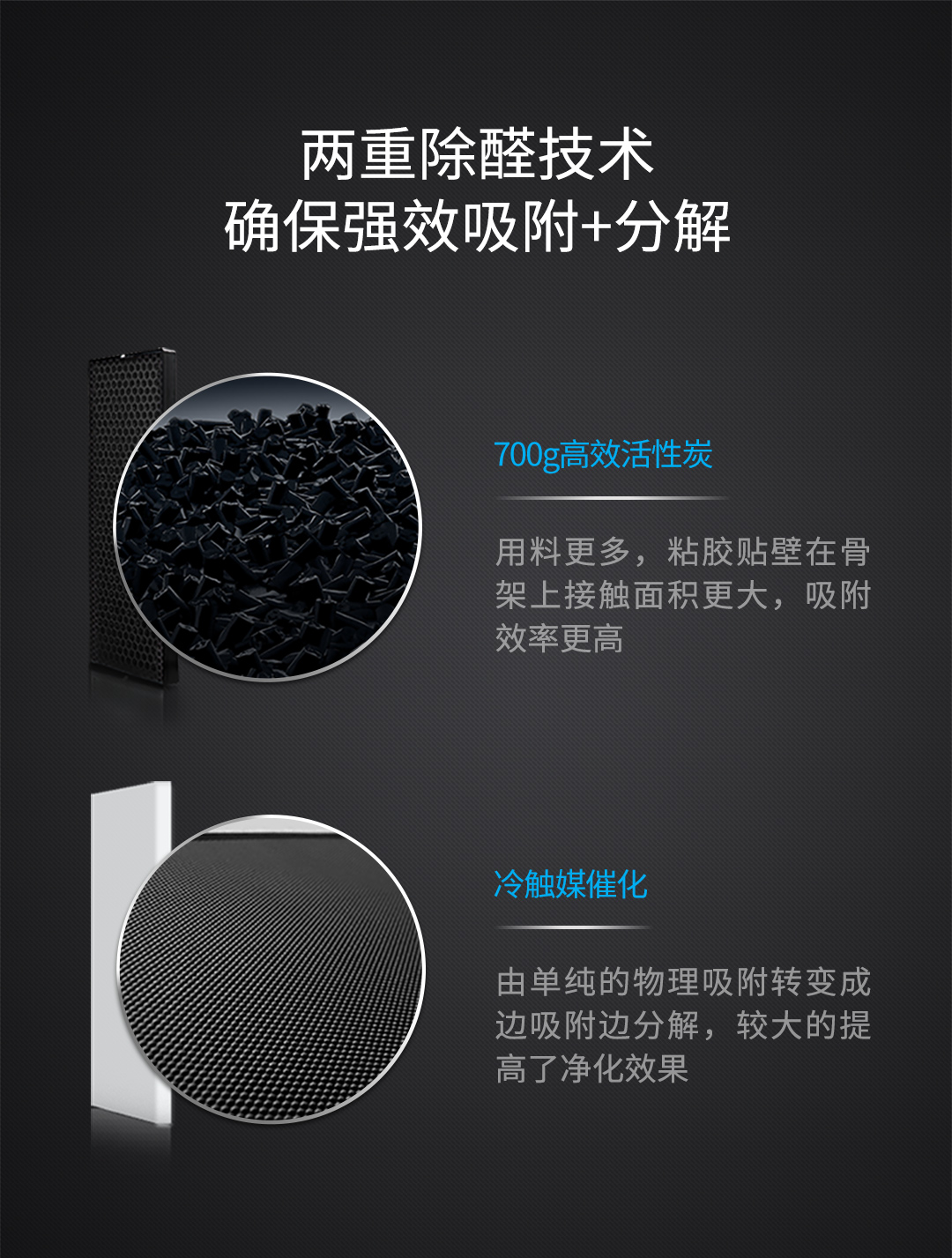 兩重除醛技術(shù),椰殼活性炭層復(fù)合高效去甲醛濾網(wǎng),采用特殊處理的高效顆?;钚蕴亢屠溆|媒催化,可凈化96%以上甲醛、苯、TVOC等常見有害物質(zhì),確保過濾后的空氣達(dá)到森林級(jí)的原生空氣。