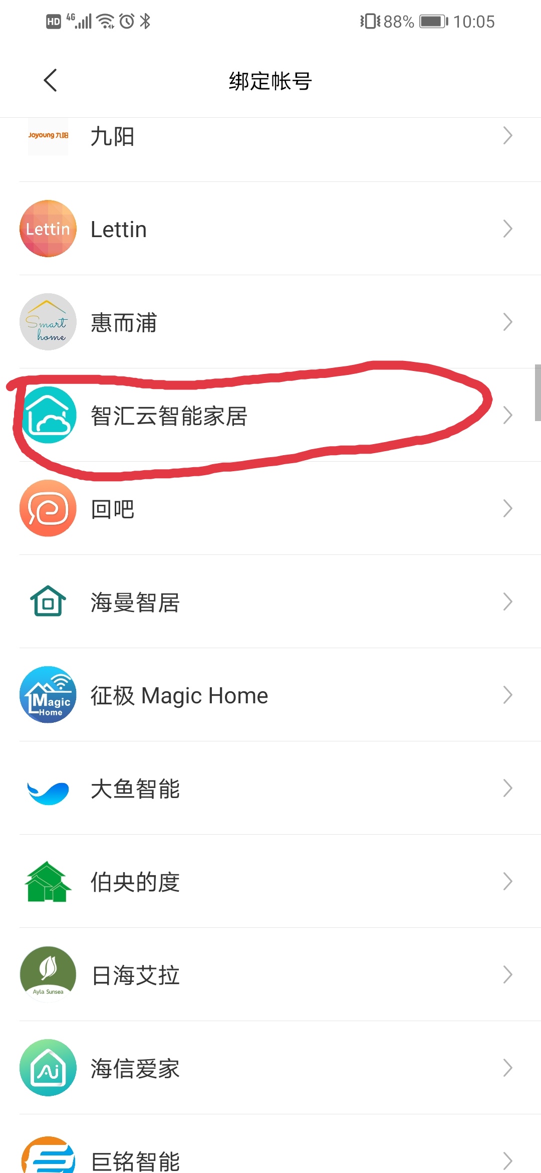 3、下拉,找到“智匯云智能家居”;