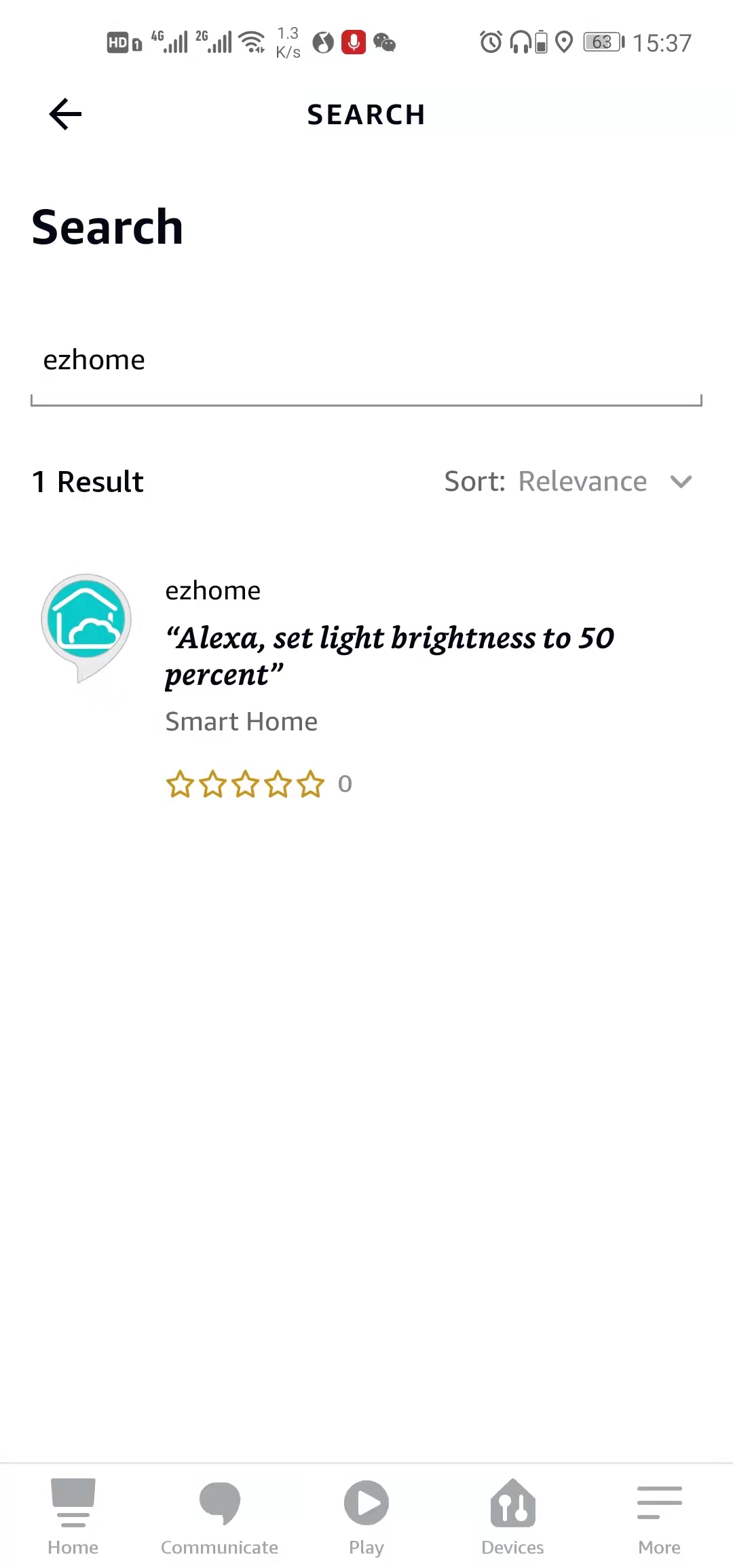 1、 打開“Amazon Alexa”APP,在首頁搜索“ezhome”跳轉(zhuǎn)至本頁面