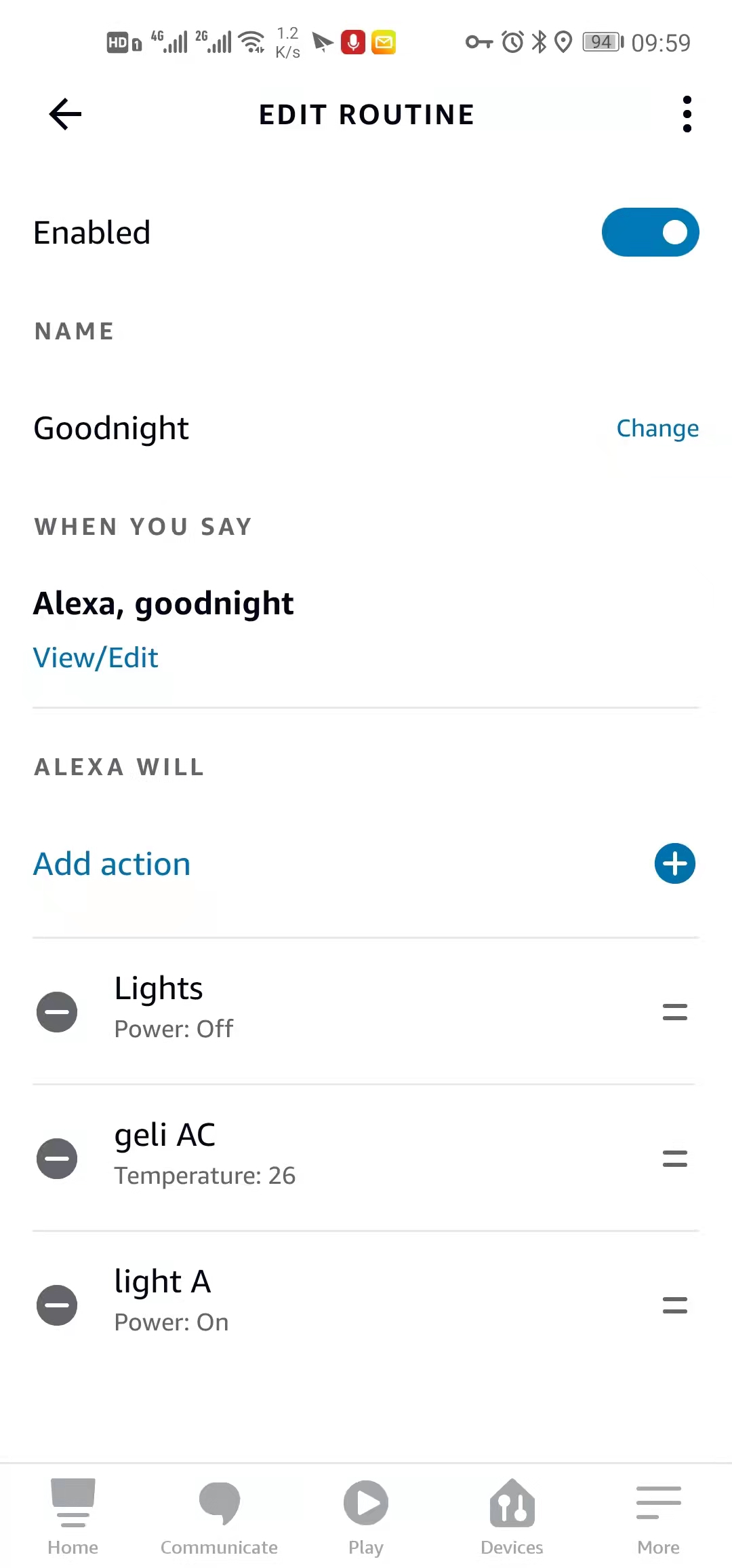 6、您可在“Amazon Alexa”APP上自行編輯場景,同時在智匯云APP上已設(shè)定好的場景亦可同步到“Amazon Alexa”APP