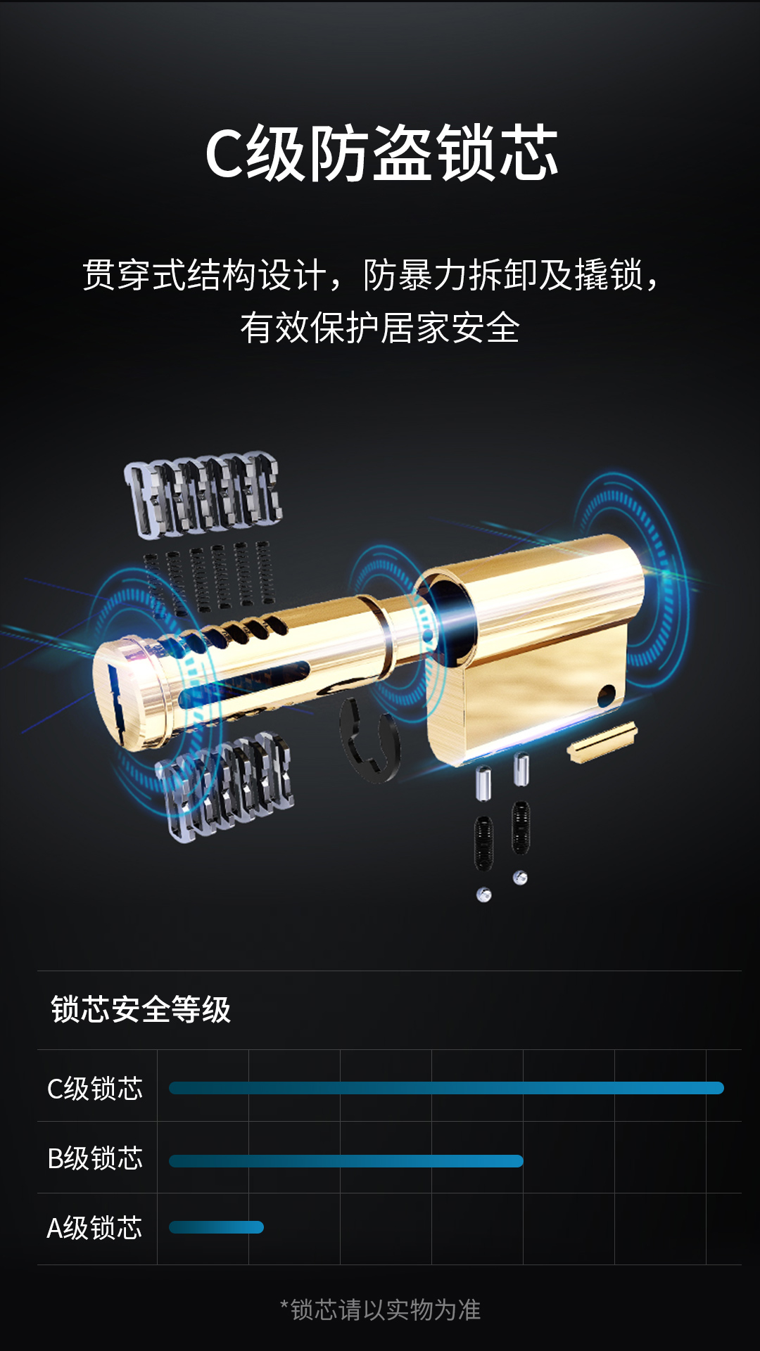 智匯云的這款智能門鎖,將安全屬性融入到產品的每個細節(jié),用心不僅體現在功能上更體現在選材上。智能門鎖采用的C級防盜鎖芯,能夠有效防暴力拆卸及撬鎖,安全系數高。