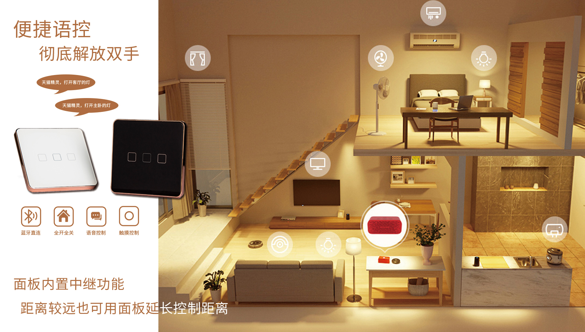 通過語音指令即可控制面板的開關操作。