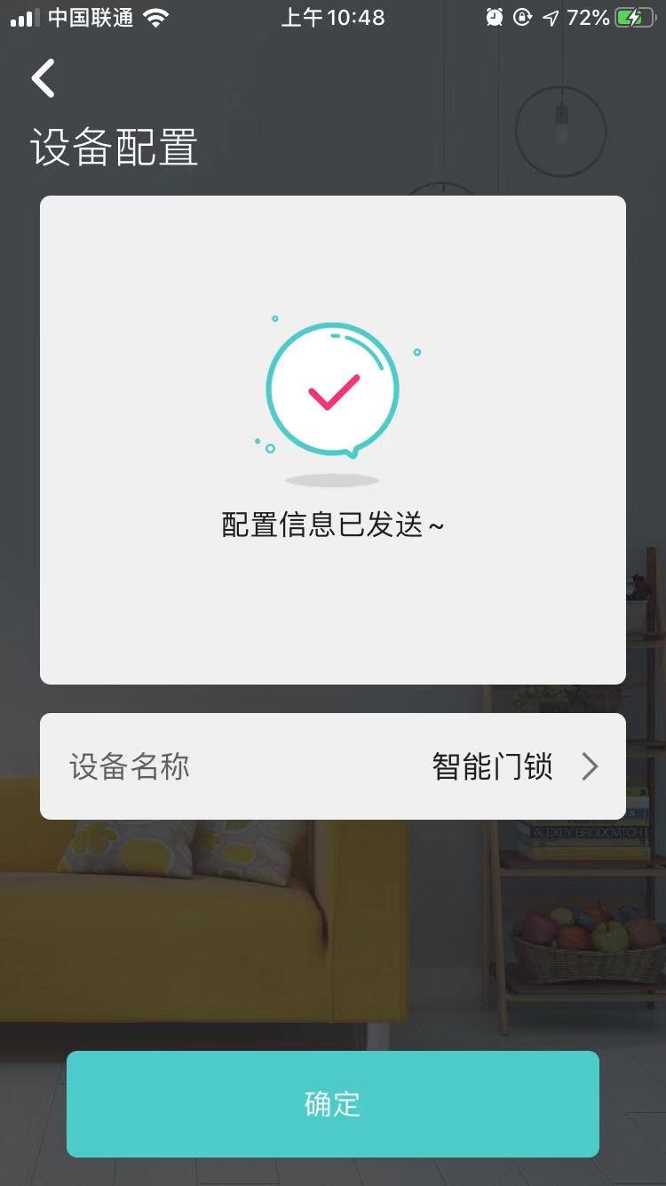 設(shè)備配網(wǎng)成功后,可編輯門鎖名稱,點(diǎn)擊確定即可完成設(shè)備添加。