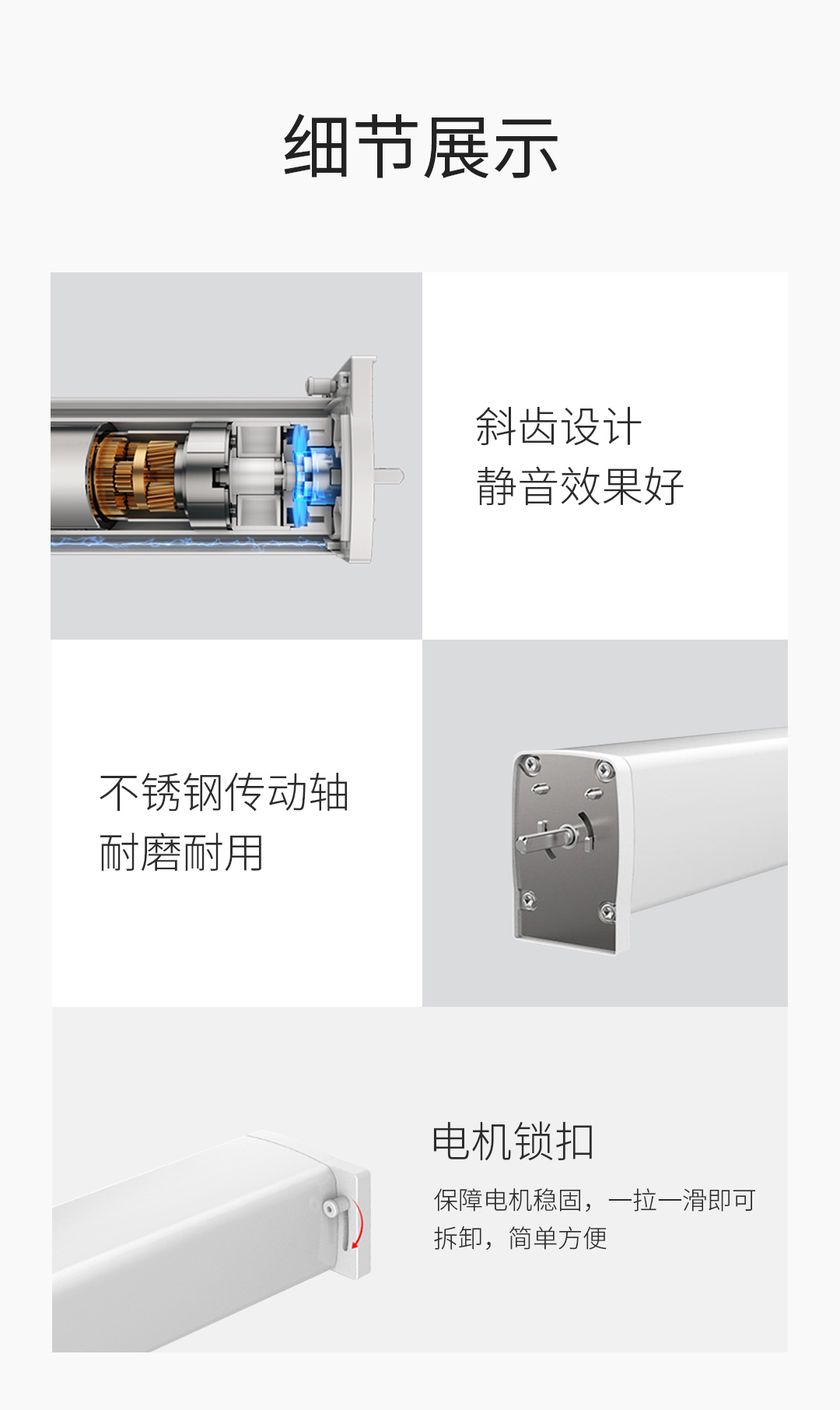 后期即便想更換不同規(guī)格的窗簾電機(jī)也無(wú)需整套全換,單獨(dú)替換端頭即可適配對(duì)應(yīng)電機(jī),省錢又省事。